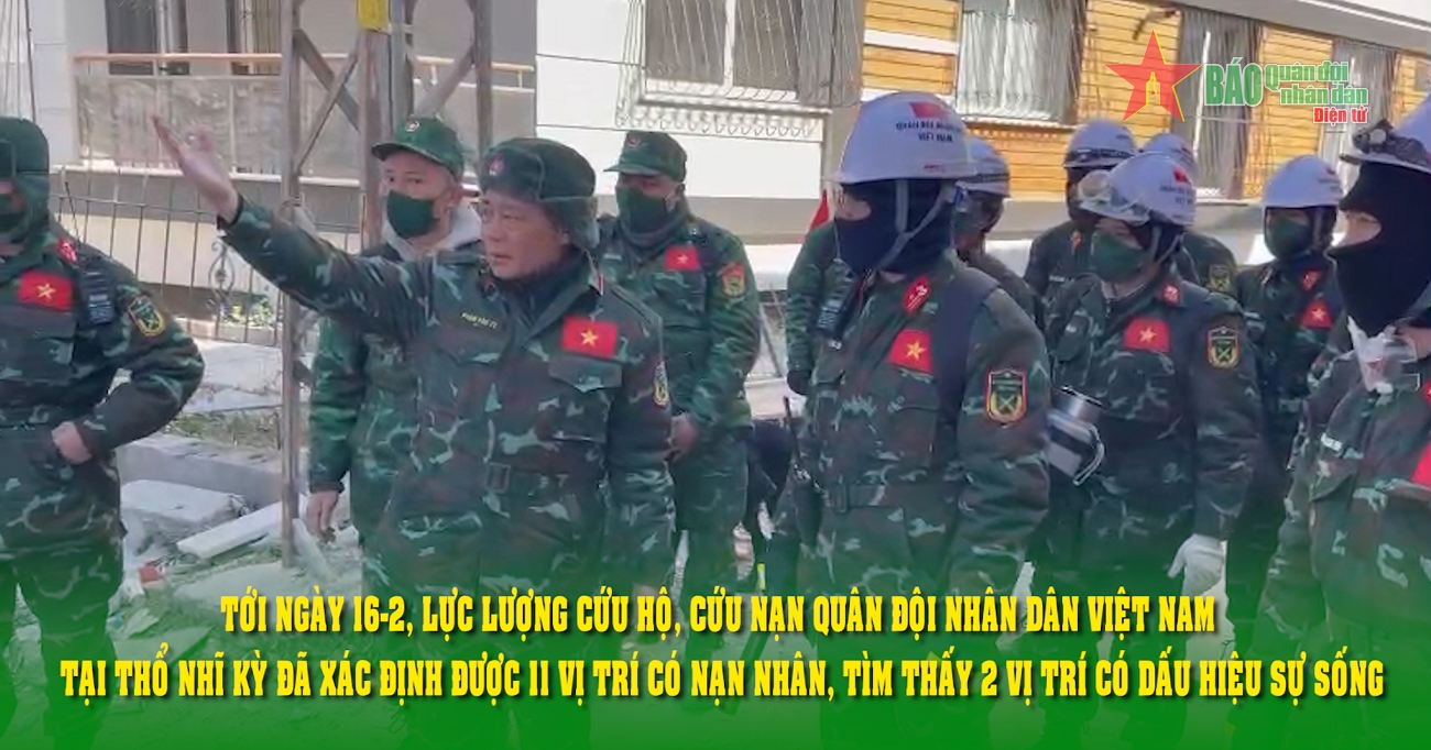Tới ngày 16-2, Lực lượng cứu hộ, cứu nạn Quân đội nhân dân Việt Nam tại Thổ Nhĩ Kỳ đã xác định được 11 vị trí có nạn nhân, tìm thấy 2 vị trí có dấu hiệu sự sống