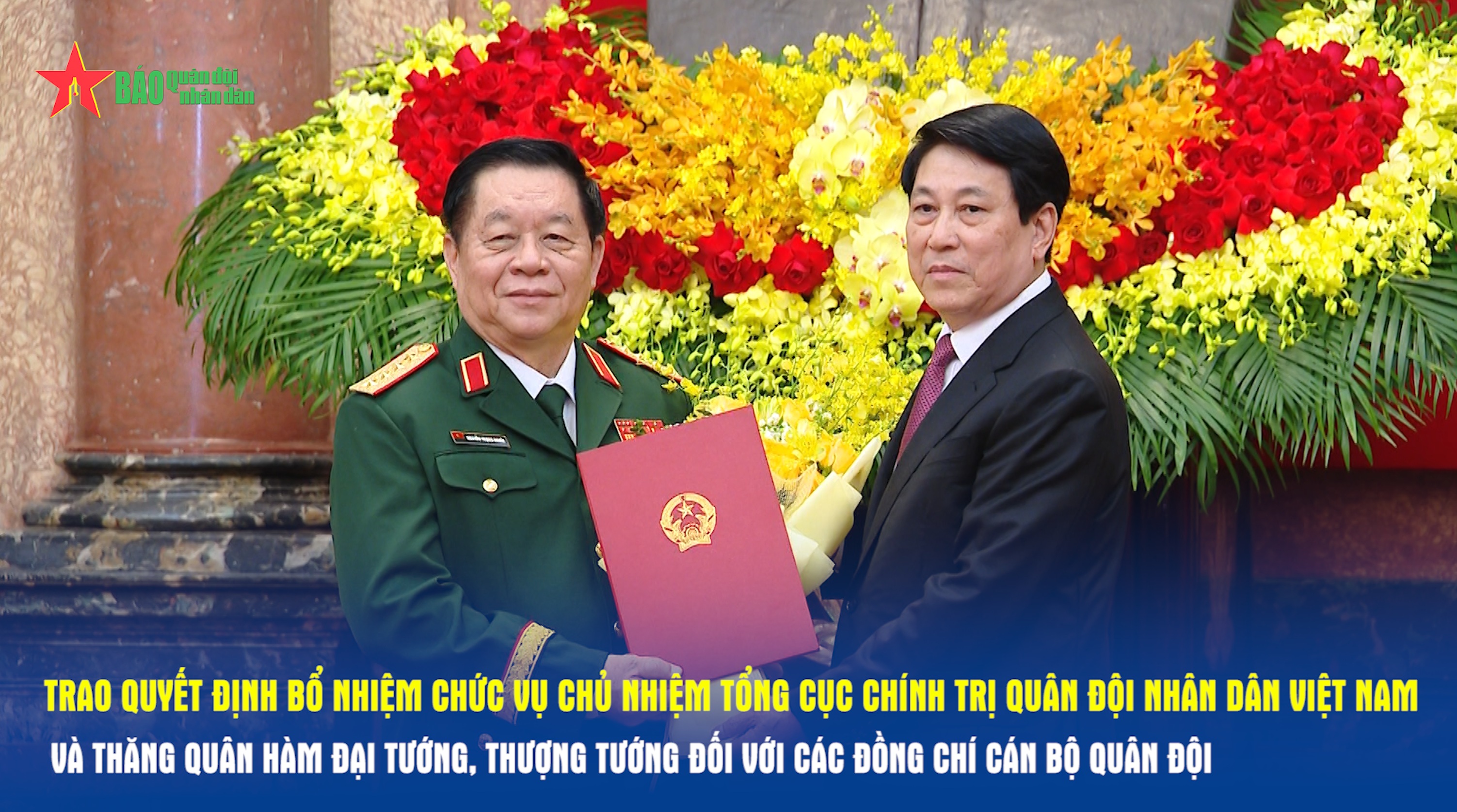 Sáng 4-1, tại Phủ Chủ tịch, Chủ tịch nước Lương Cường, Ủy viên Bộ Chính trị, Thống lĩnh lực lượng vũ trang nhân dân, Chủ tịch Hội đồng quốc phòng và an ninh chủ trì Lễ công bố và trao Quyết định Bổ nhiệm Chủ nhiệm Tổng cục Chính trị QĐND Việt Nam và thăng Quân hàm Đại tướng và Thượng tướng cho sĩ quan QĐND Việt Nam.