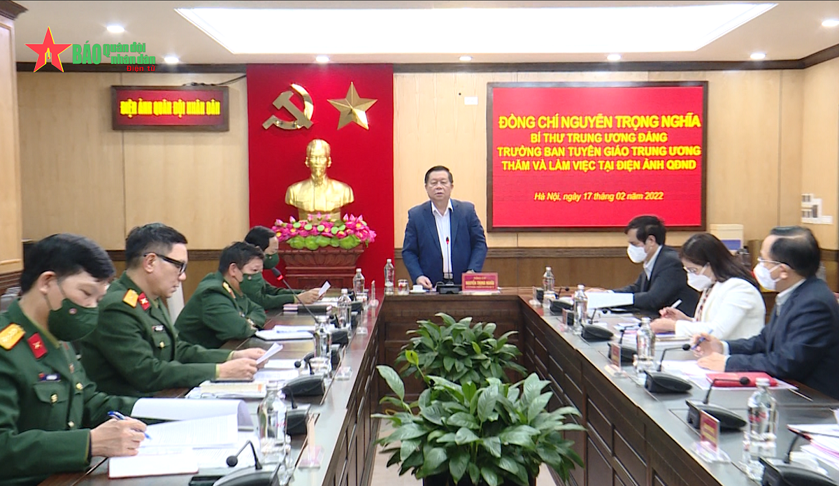 Chiều 17-2, đồng chí Nguyễn Trọng Nghĩa, Bí thư Trung ương Đảng, Trưởng ban Tuyên giáo Trung ương đã tới thăm và làm việc tại Điện ảnh Quân đội nhân dân.